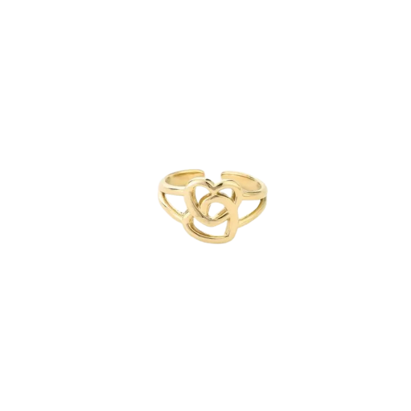 De Hartjes ring voor dames is een stijlvol accessoire dat vervaardigd is uit roestvrij staal.