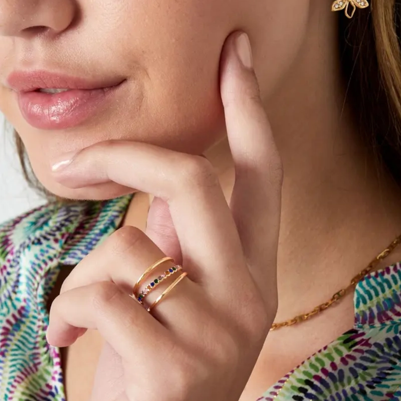 Kortom, de drie-laags ring met steentjes is een must-have voor dames die hun look willen verrijken met verfijnde en duurzame sieraden.