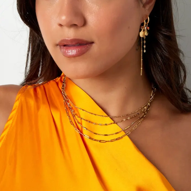 Schakelketting 4 laags is een populaire keuze voor dames sieraden, vooral wanneer het gaat om stijlvolle en veelzijdige outfits.