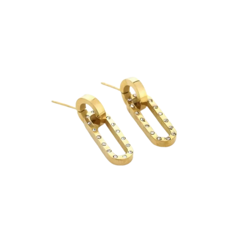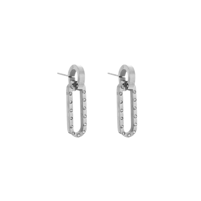 Deze oorbellen, vervaardigd uit stainless steel, zijn voorzien van sprankelende strass steentjes.