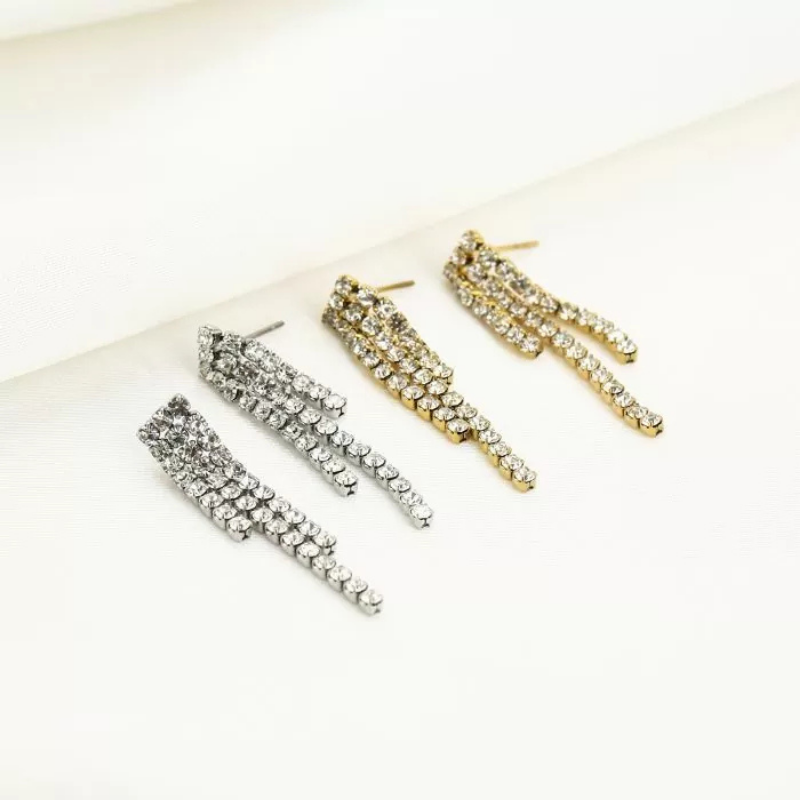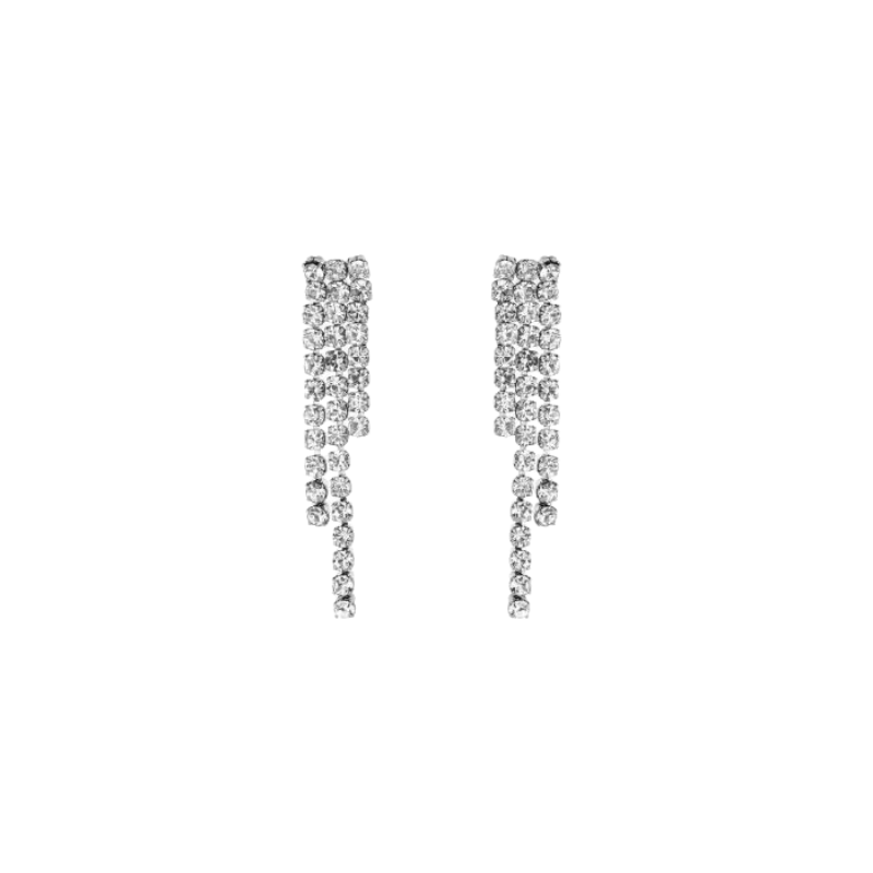 Deze oorbellen, versierd met sprankelende strass steentjes, zijn verkrijgbaar in de stijlvolle kleuren zilver en goud.