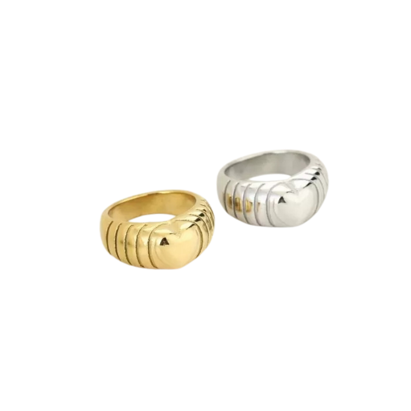 Deze ring is gemaakt van hoogwaardig roestvrij staal en is verkrijgbaar in de kleuren zilver en goud.